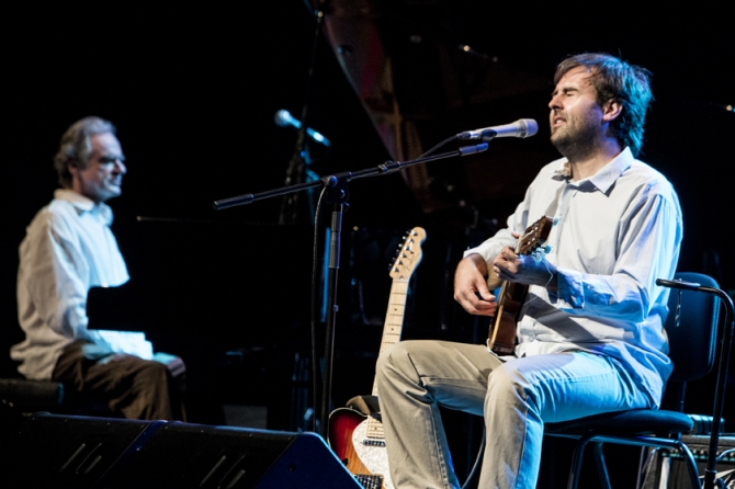 En un perfecte castellà, Taubkin va agrair l'encontre, i assegut al piano de cua va ornamentar una desena de cançons de Mas. De vegades era la percussió qui marcava el ritme, sobre melodies taral·lejades que ens apropaven a la calidesa rítmica de la música popular brasilera, un registre universal que va embolcallar juganerament i va vestir de samba canarinha cadascuna de les cançons del repertori. Poques paraules, i només algun comentari de Benjamim Taubkin.