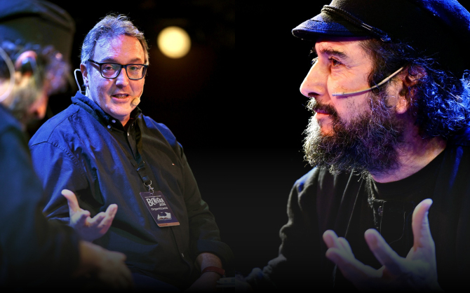 Capossela amb el director del festival,