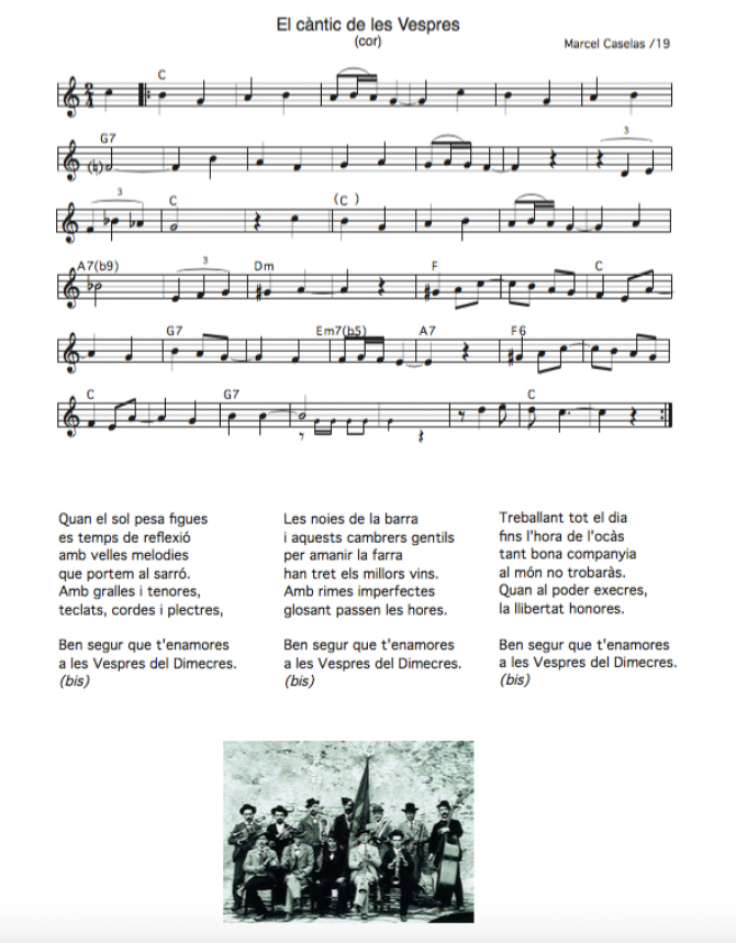 Aquesta és la partitura i la lletra d'El càntic de les Vespres, per a qui vulgui practicar: